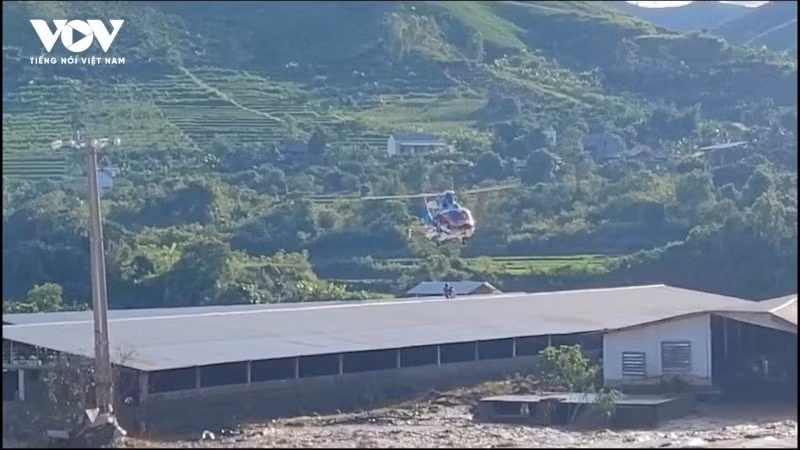 Vào khoảng hơn 17h ngày 1/8, 8 người dân bị mắc kẹt, cô lập do mưa lũ tại xã Mường Hung, tỉnh Sơn La đã được trực thăng của Bộ Quốc phòng giải cứu.