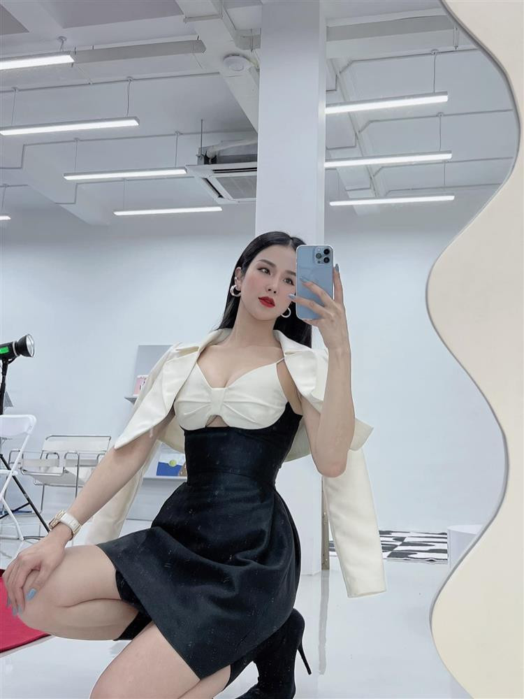 Sự khéo léo của Diệp Lâm Anh trong việc làm dâu còn được thể hiện ngay trong cách ăn mặc. Khán giả đã quá quen với những hình ảnh lên đồ "khoét trên hở dưới" của mẹ 2 con, song khi có sự xuất hiện của người mẹ chồng quyền lực, người ta thấy style của Diệp Lâm Anh cũng "tem tém" hẳn so với bình thường.