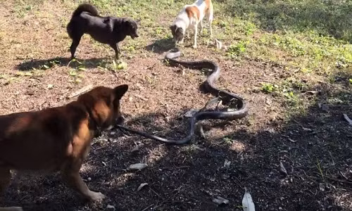Không may cho hổ mang chúa là nó đánh mất hoàn toàn ưu thế khi phải giao chiến với bầy chó lên tới 6 con. Nếu chỉ có 1 hoặc hai con chó thì có lẽ rắn hổ mang vẫn có thể tự vệ được bằng vũ khí chết người là nọc độc của mình.