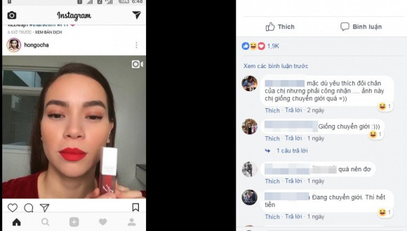 Một số trang fanpage cũng như cư dân mạng nhận xét gương mặt Hồ Ngọc Hà giống người chuyển giới.