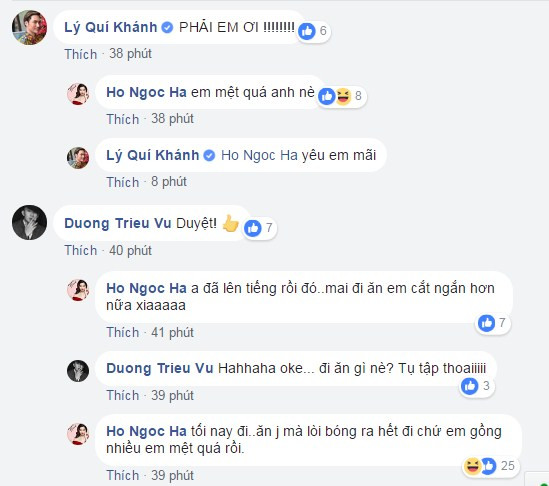 Lý Quí Khánh và Dương Triệu Vũ đồng tình với quan điểm của ca sĩ Hồ Ngọc Hà. Nữ ca sĩ còn hài hước trả lời Dương Triệu Vũ: "Tối nay đi ăn gì mà lòi bóng ra hết đi, chứ em gồng nhiều, em mệt quá rồi".