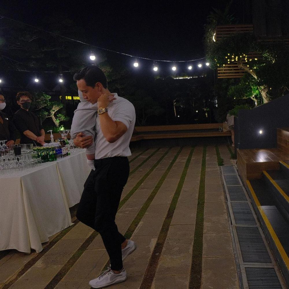 ồ Ngọc Hà - Kim Lý âu yếm các con trong một bữa tiệc đêm.