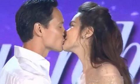 | Cặp đôi trao nhau ánh nhìn đầy yêu thương trước khi tiến lại thực hiện màn "khóa môi" lãng mạn và ngọt ngào. (ảnh: Chu Văn Hoàn) |