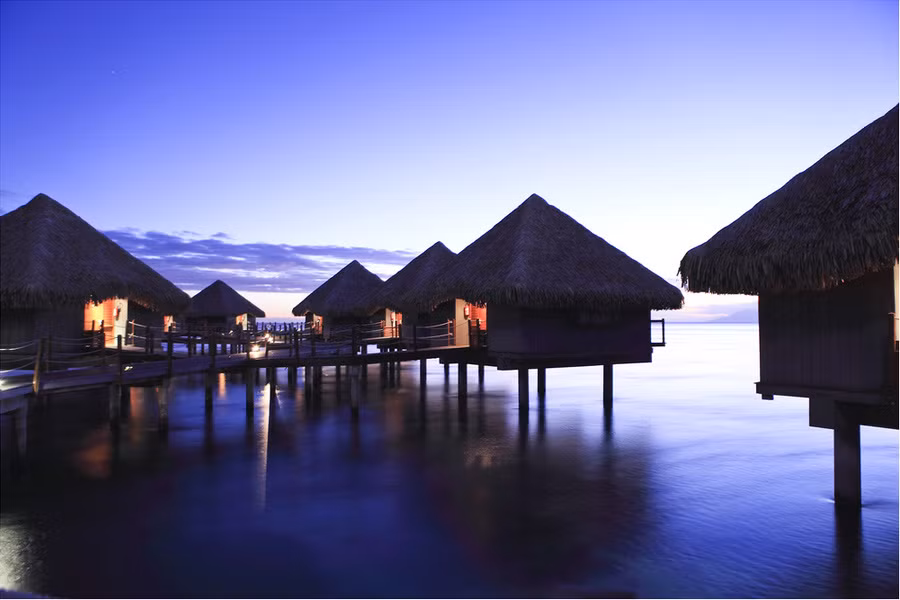 Những ngôi nhà bungalow (nhà đặc trưng kiểu Polynesia) ngay trên những đầm nước xanh ngọc. Đó là khung cảnh quen thuộc du khách được chiêm ngưỡng khi tới Bora Bora. Hòn đảo thiên đường ở khu vực Polynesia nước Pháp tự hào với đỉnh núi Otemanu hoang dã, xanh mướt, những hòn đảo nhỏ và những rặng san hô rực rỡ sắc màu, là địa điểm lý tưởng cho kỳ nghỉ lãng mạn.