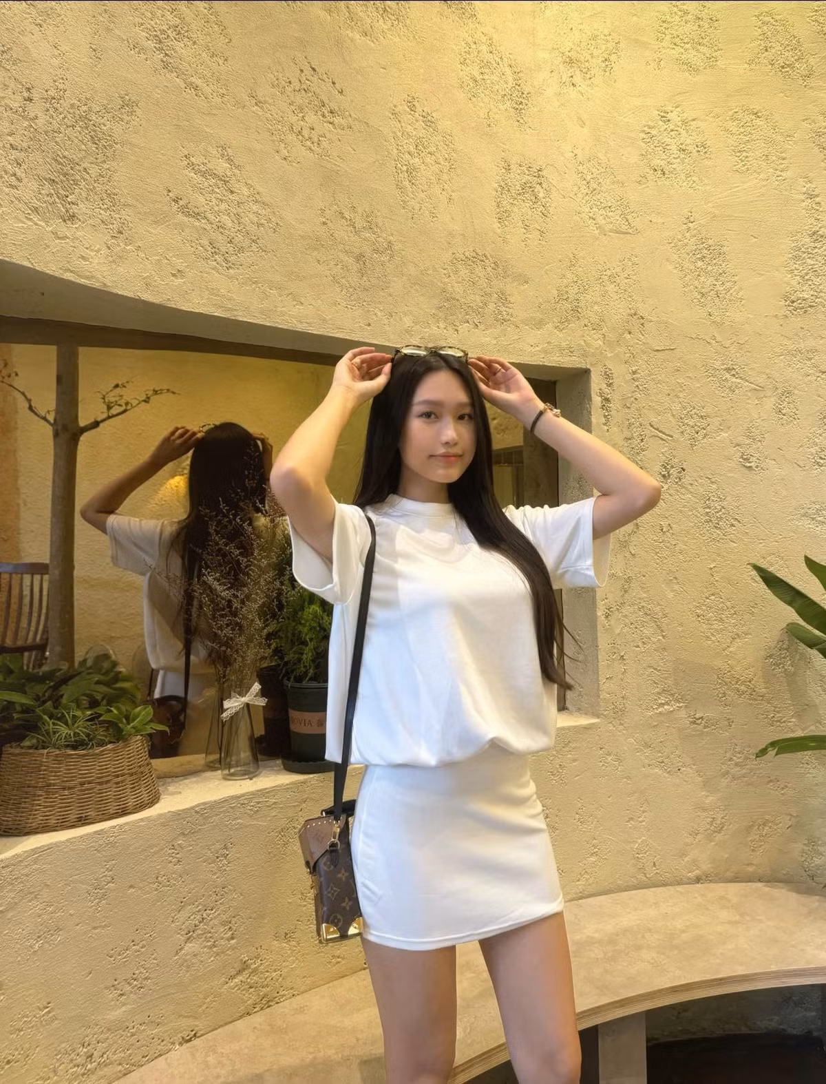 Trong một video khác, Doãn Hải My được quay từ phía sau, cô nàng khoe góc nghiêng cực phẩm, xinh đẹp nở nụ cười với camera.