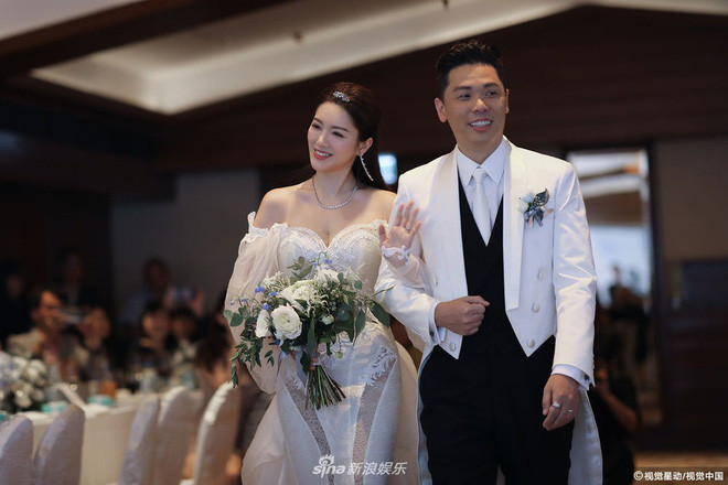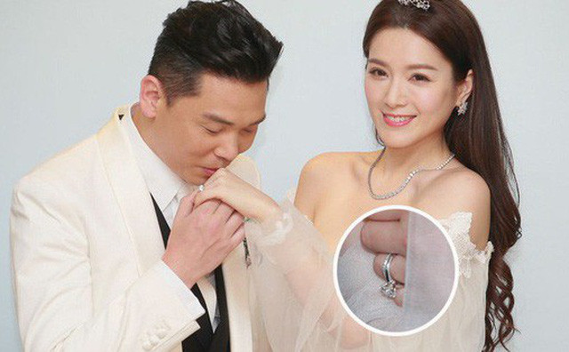 | Trong đám cưới, Cẩu Vân Tuệ đeo chiếc nhẫn đính hôn lấp lánh ấy, thu hút sự chú ý. |