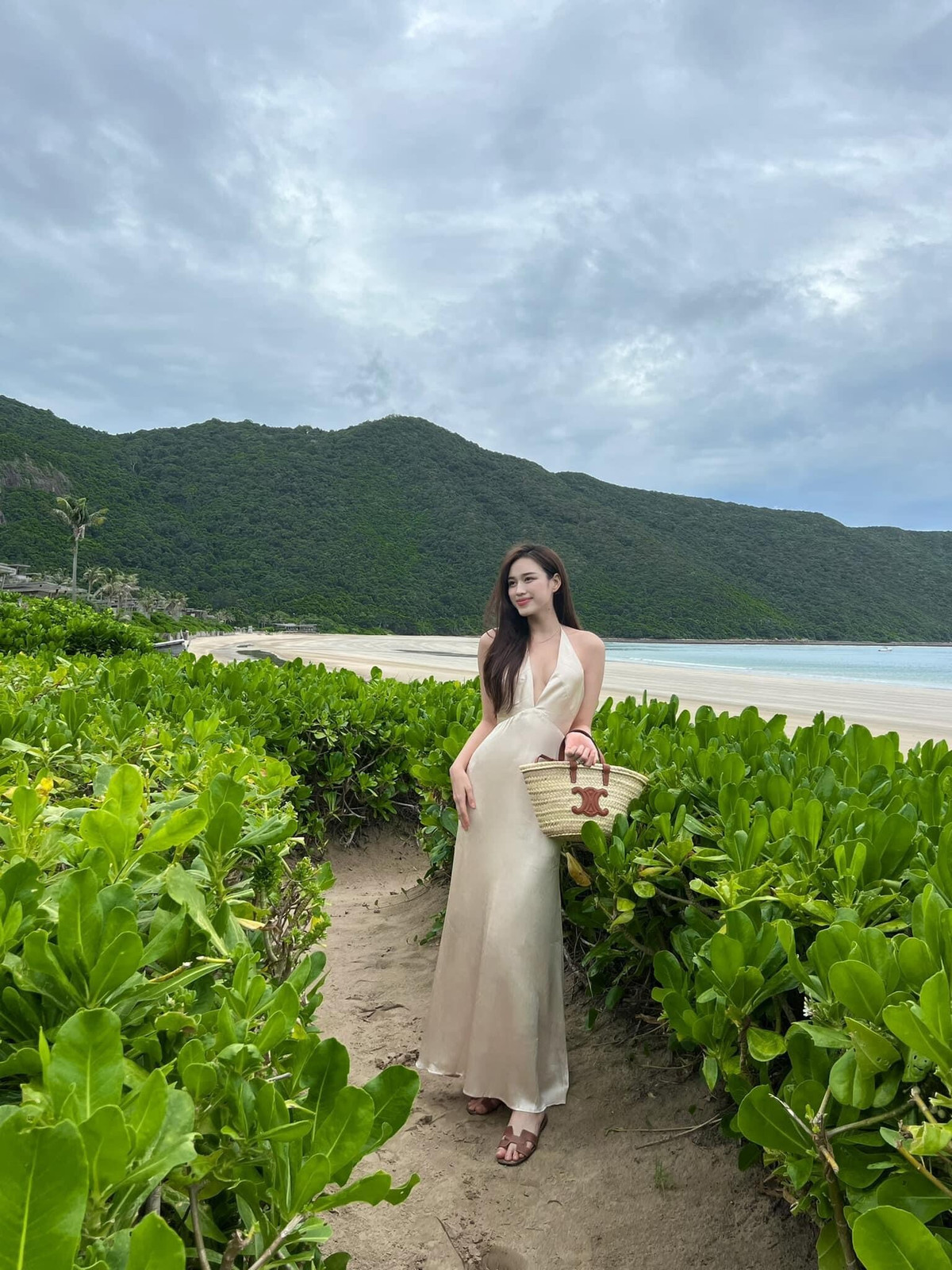 Mẫu túi cói Celine được nàng hậu ứng dụng để đi dạo biển với mức giá hơn ngàn đô.