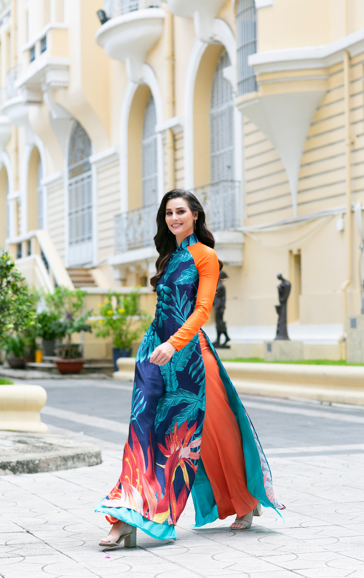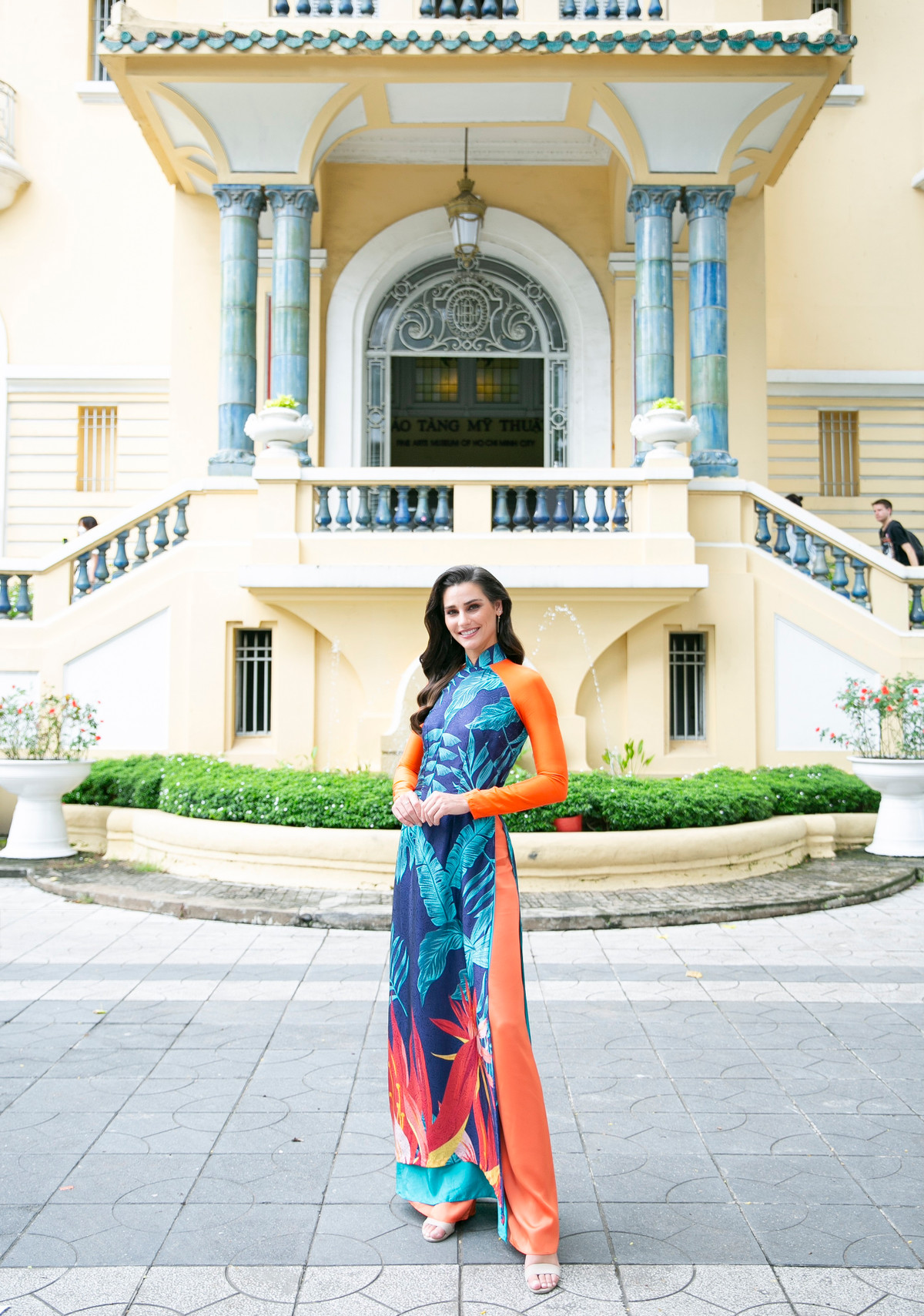 Miss Earth 2020 Lindsey Coffey dành một ngày để tham quan TP HCM trong lần thứ hai trở lại Việt Nam. Người đẹp diện áo dài khi xuất hiện ở bảo tàng cổ kính. Cô hiện là giám khảo quốc tế của cuộc thi Hoa hậu các Dân tộc Việt Nam 2022.