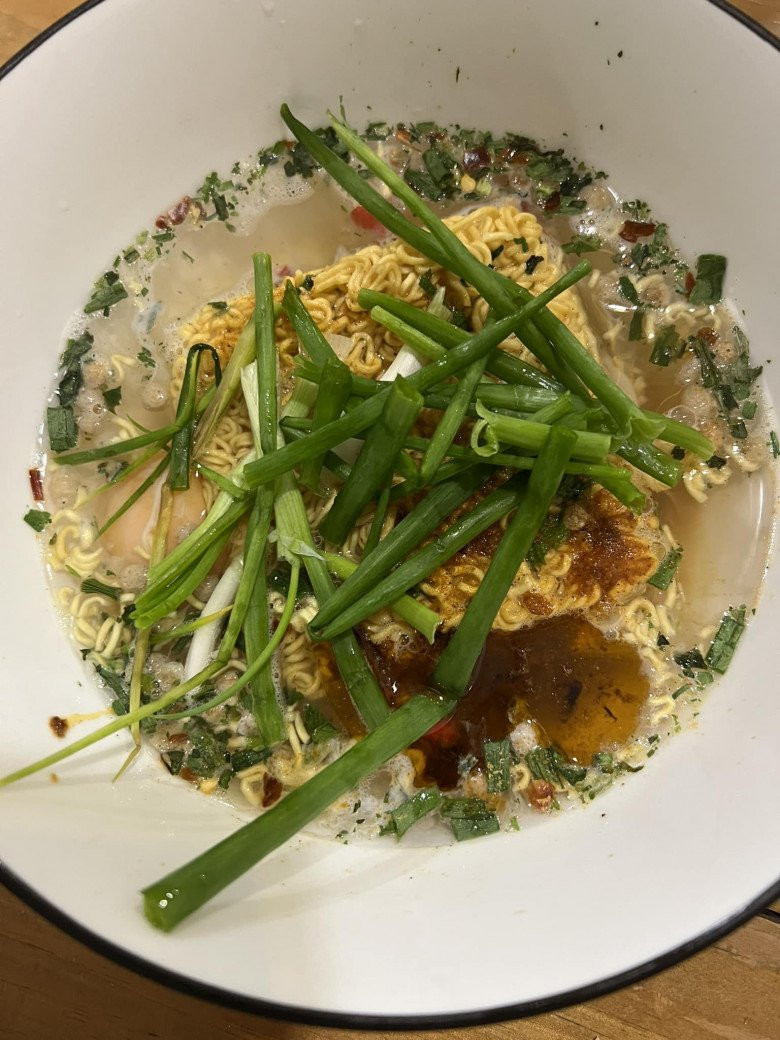 Tuy nhiên với lịch trình bận rộn trong ngày, đôi khi nàng hậu phải ăn mì gói. Bữa mì vào buổi tối gần đây được Hoa hậu giản dị nhất Việt Nam chia sẻ, có mì tôm, "lấp ló" thấy trứng nhưng không thể không đập vào mắt là rất nhiều hành lá.