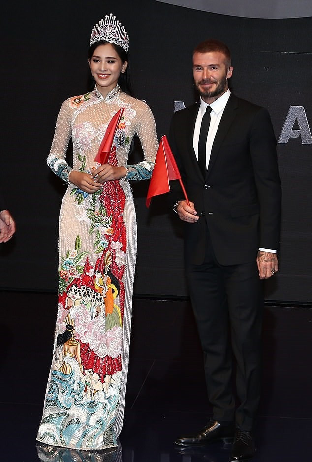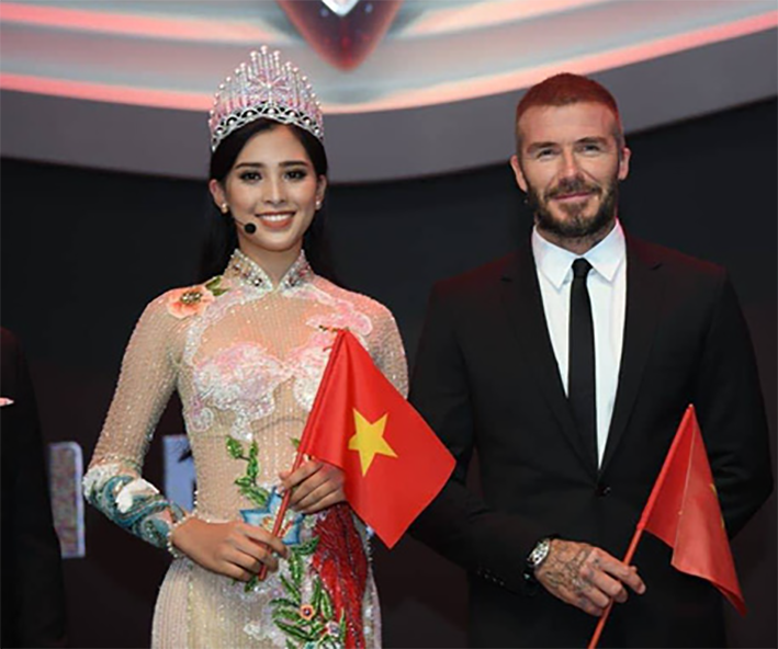 Hoa hậu Trần Tiểu Vy đẹp ngời ngời khi sánh đôi David Beckham