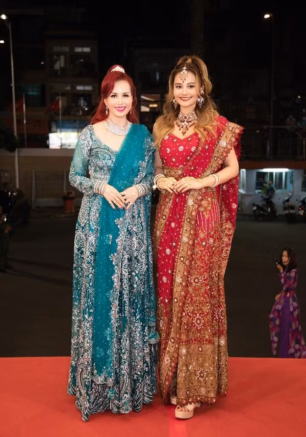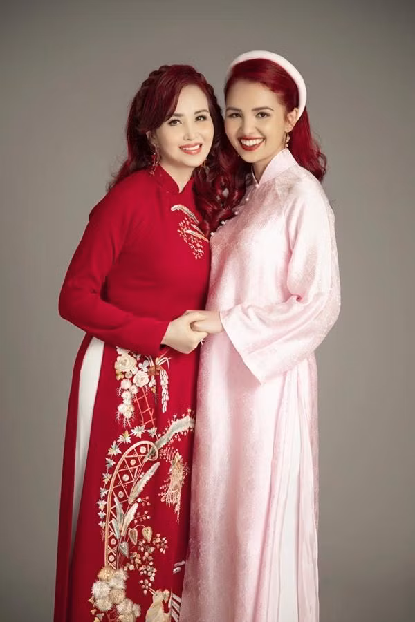 Hai con gái lai Ấn của hoa hậu Diệu Hoa khoe vẻ đẹp xinh tươi với áo dài Việt Nam.