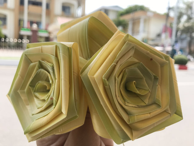 Hoa hồng được làm từ lá dừa nước non mang màu sắc "lạ"