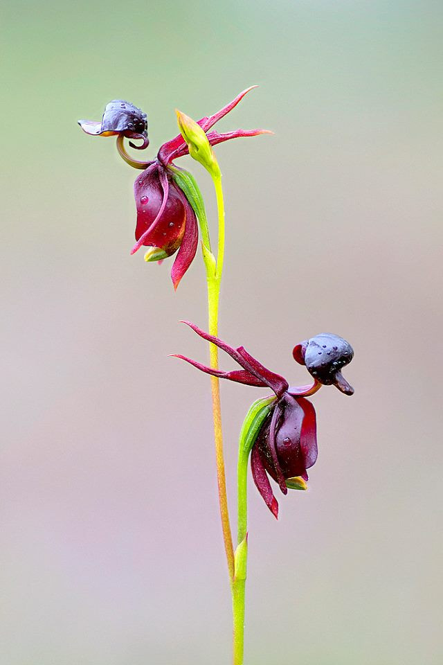 Hoa lan vịt bay (hay Celena major) là một trong những loài hoa tuyệt vời nhất của đất nước Úc. Chúng được đặt tên như vậy bởi mỗi bông hoa có hình dáng như một chú vịt con đang bay. Loài thực vật có hoa đặc biệt này chỉ sinh trưởng ở miền Nam và Đông Úc. Những bông lan vịt bay có màu sắc pha trộn giữa sắc nâu chuyển sang tím.Và thật đáng kinh ngạc, bông hoa dường như muốn bay xa khỏi cuống của nó.