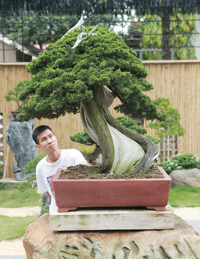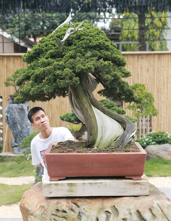 Anh Phong cho hay, những cây duyên tùng này đều có tuổi đời trên 100 năm và rất có giá trị, có cây lên đến trên 3 tỷ đồng. Phần gốc và thân đa phần đã hóa lũa (phần thân cây chết), do chủ ý của người làm cây, họ chỉ để một phần thân cây sống để nuôi tay, cành, bông, tán. Đó là phong cách bonsai của người Nhật.