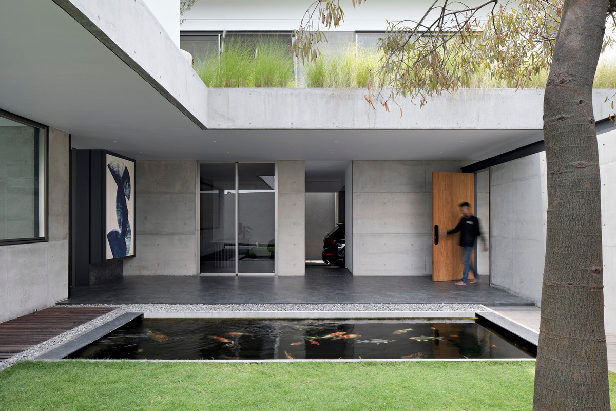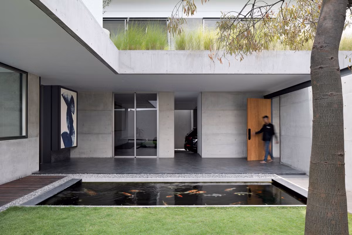 Với mẫu thiết kế nhà 2 tầng này, gia chủ vừa đặt chân vào sảnh sẽ bắt gặp hồ cá Koi, sau đó là lối vào khu vực sinh hoạt