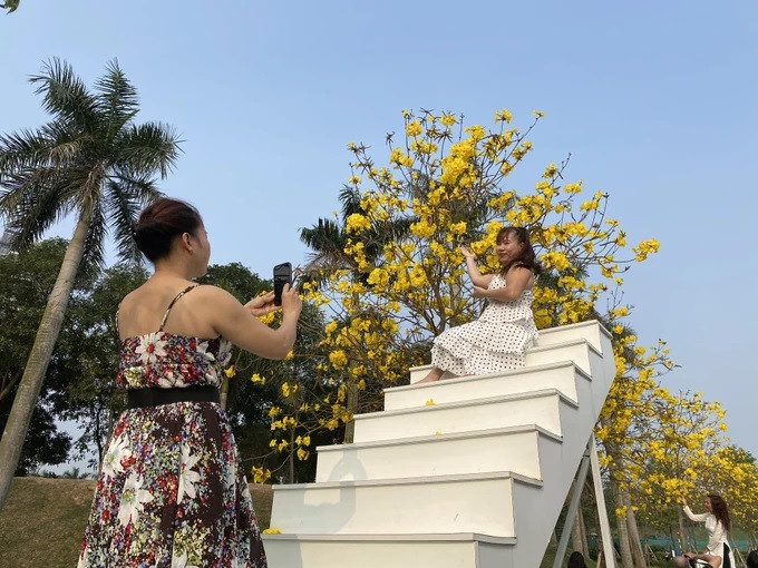 Vào những ngày cuối tuần, nhiều người dân (chủ yếu là phụ nữ) ở Hà Nội kéo về khu đô thị Park City Hà Đông tạo dáng, chụp ảnh cùng hoa phong linh để đăng tải mạng xã hội.