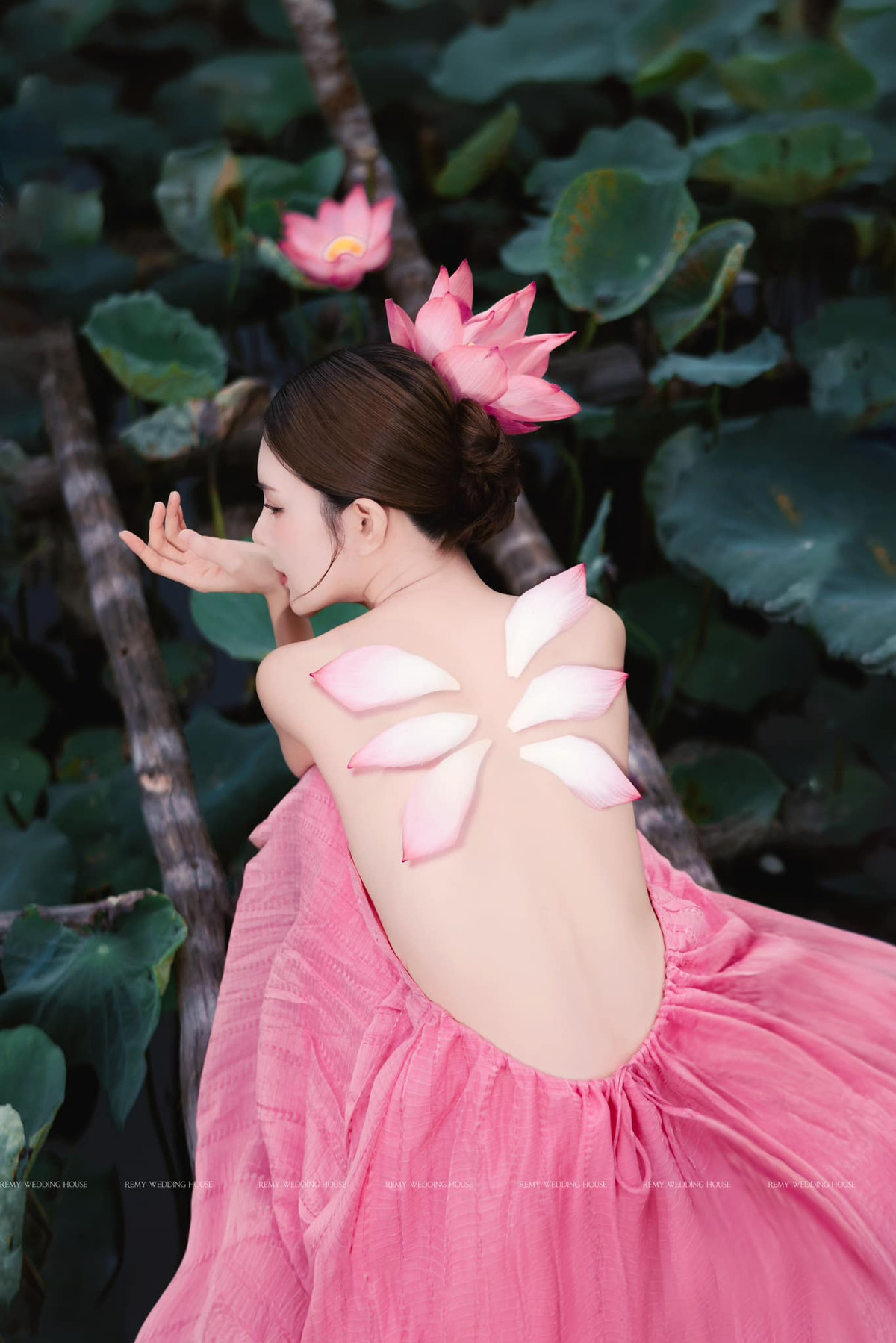 Hóa tiên nữ ao sen, “hot girl tên lạ” khoe lưng trần trắng nõn