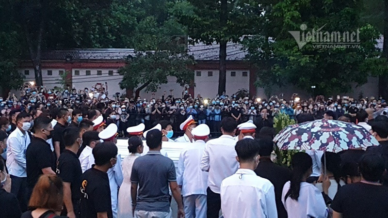 Đoàn tang lễ đưa linh cữu nghệ sĩ Chí Tài ra xe tang để bắt đầu di chuyển.
