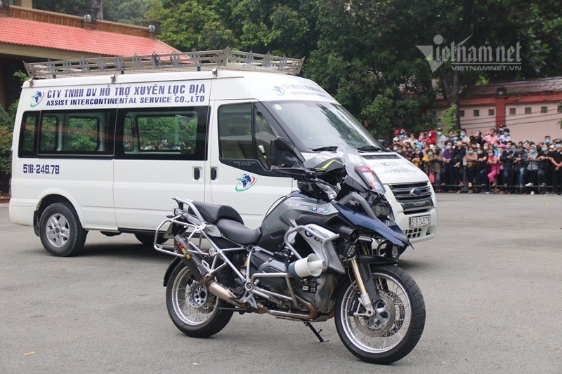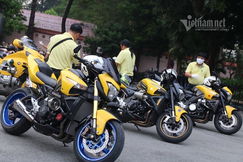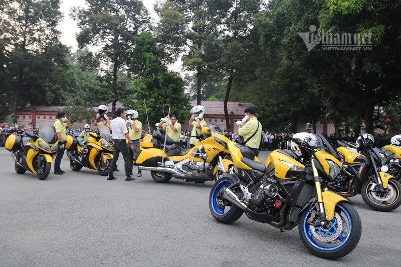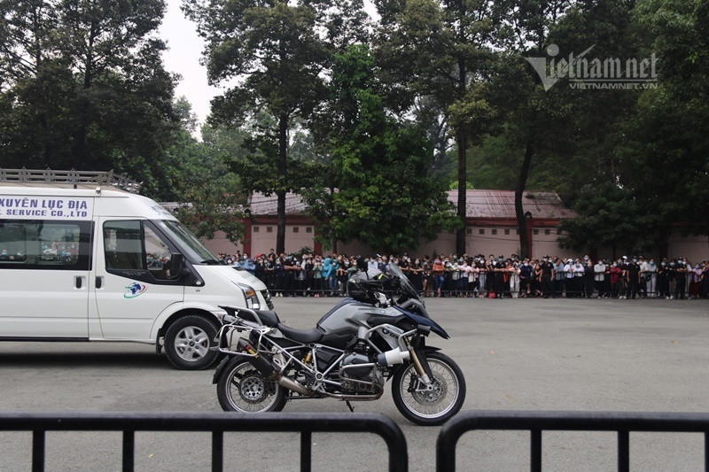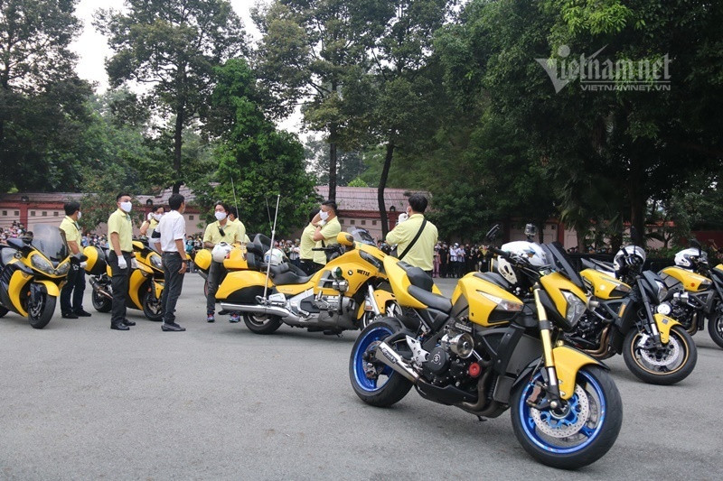 Loạt xe dẫn đường đã có mặt từ sớm trực bên ngoài Nhà tang lễ để chuẩn bị thực hiện nhiệm vụ.