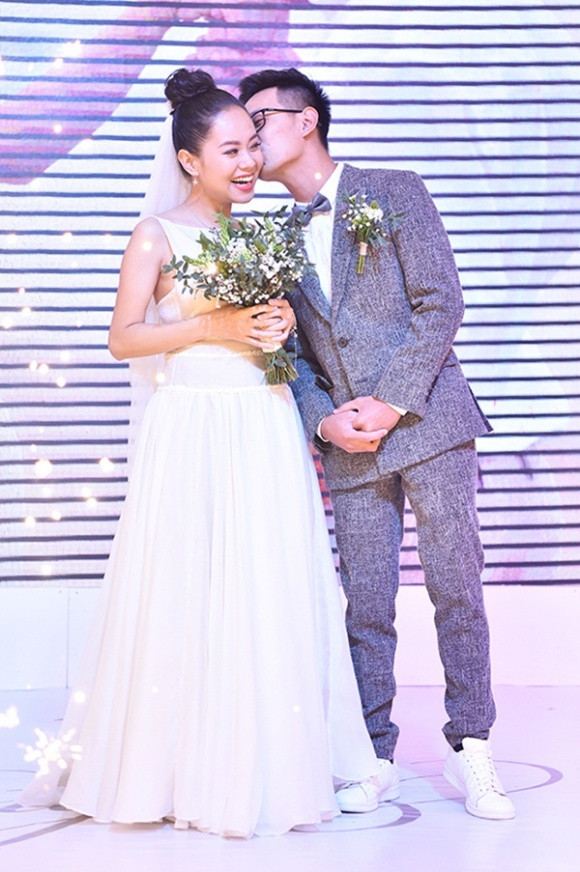 Á quân Vietnam Idol 2012 Hoàng Quyên hạnh phúc trong đám cưới với chồng kiến trúc sư.