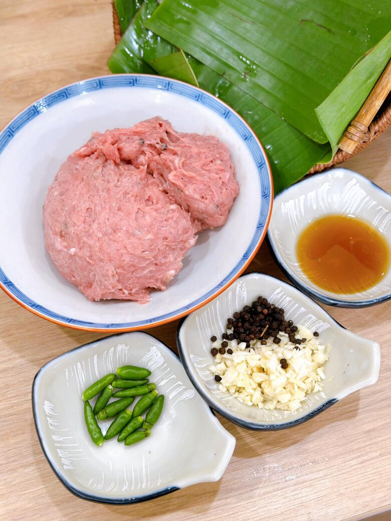 Trộn đều tất cả các nguyên liệu làm chả bò.