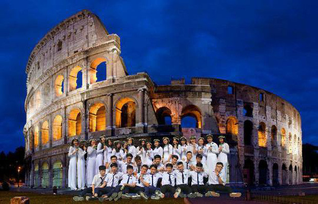 Dạo một vòng quanh mạng xã hội, mới thấy chụp ảnh kỷ yếu theo phong cách "vòng quanh thế giới" này đang được rất nhiều lớp ưa chuộng sử dụng.