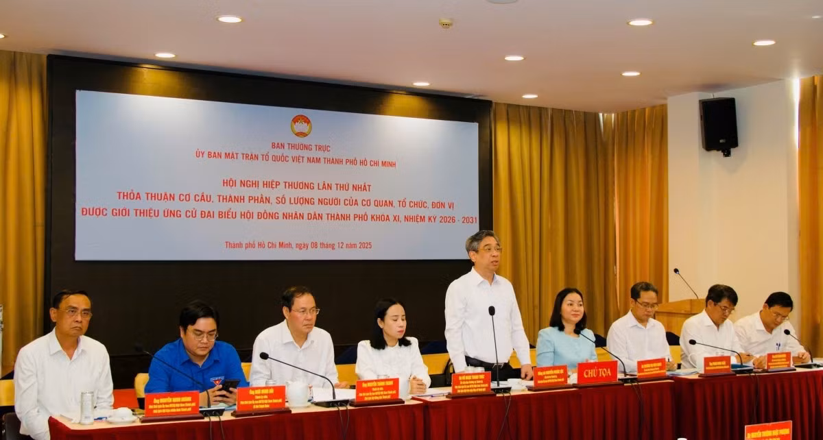 Ngày 8/12, Ban Thường trực Ủy ban MTTQ Việt Nam TP HCM tổ chức Hội nghị hiệp thương lần thứ I nhằm thỏa thuận cơ cấu, thành phần và số lượng người của các cơ quan, tổ chức, đơn vị được giới thiệu ứng cử đại biểu Quốc hội (ĐBQH) khóa XVI, nhiệm kỳ 2026-2031.