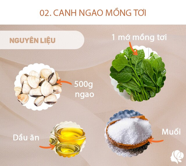 Chuẩn bị: 500g ngao, 1 bó mồng tơi, muối, bột nêm tùy ý