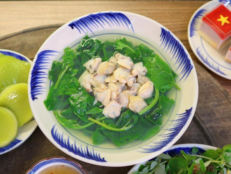 - Canh ngao nấu rau mồng tơi: 25.000đ.