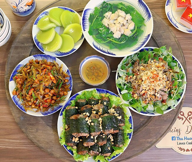 Tham khảo mâm cơm nhà chị Vũ Thu Hương để có thêm ý tưởng cho bữa cơm nhà mình. Mâm cơm này gồm các món: