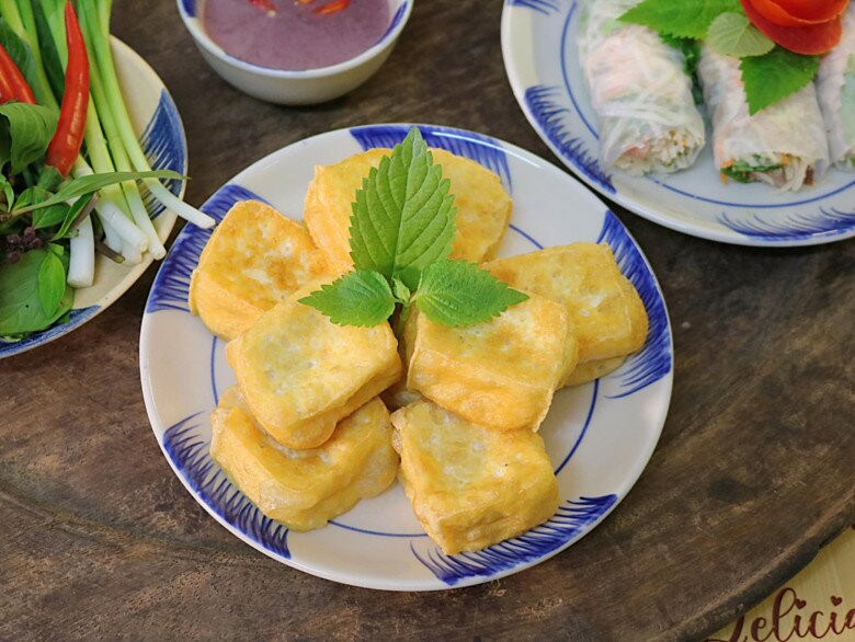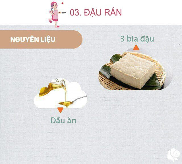 Đun nóng dầu ăn trong chảo, cho các miếng đậu đã thái vào chiên cho đến khi vàng giòn.