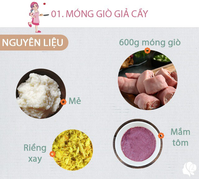 Nguyên liệu: - 600g móng giò, riềng, mẻ, sả, mắm tôm, bột nghệ, gia vị