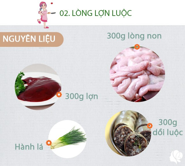 Chuẩn bị: 300g lòng non, 300g gan lợn luộc, 300g dồi luộc sẵn, hành lá, gừng vừa đủ