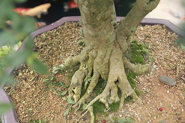 Cây có 3 thân được phát triển từ một gốc. Từ thân đến tay cành uốn lượn rất đẹp. Cây có tuổi đời khoảng 200 năm.