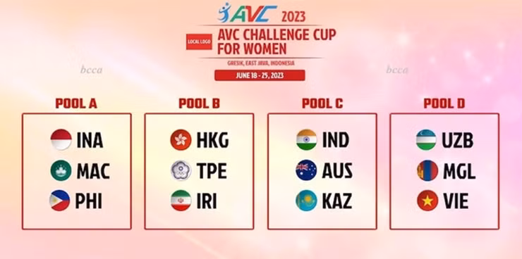 Kết quả bốc thăm chia bảng tại AVC Challenge Cup 2023