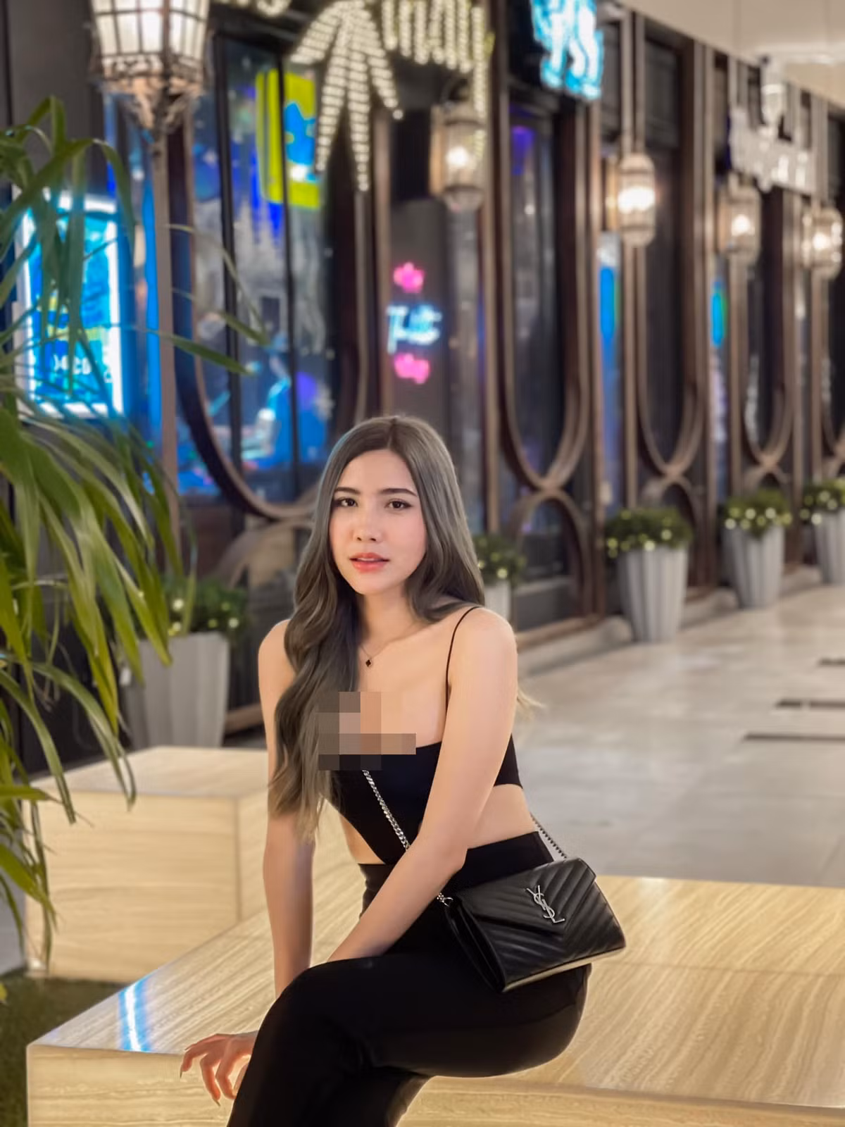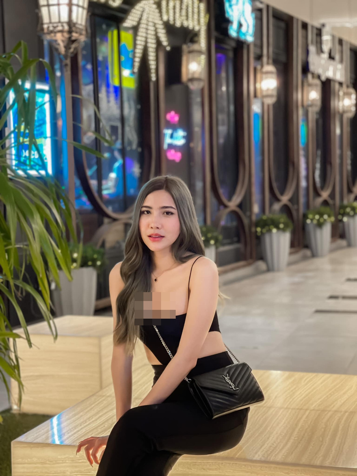 Minicha Nattanicha cũng không ngại chạy theo xu hướng, diện mốt hở chân ngực, quần áo phong cách xuyên thấu.