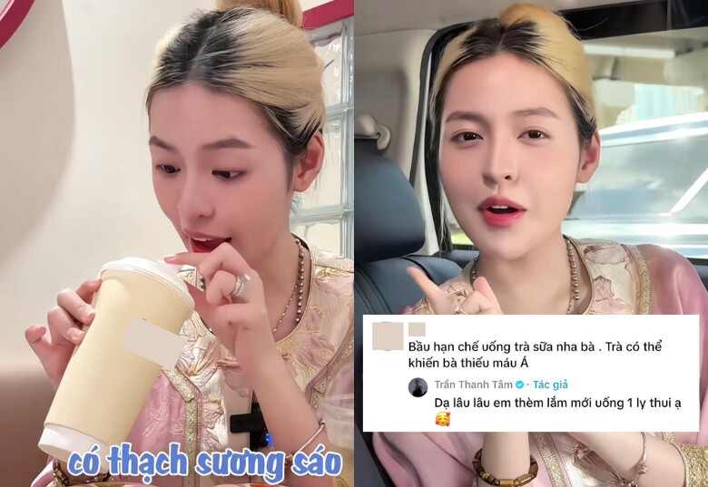 Bên dưới phần bình luận, một số ý kiến cho rằng Trần Thanh Tâm nên hạn chế uống trà sữa khi đang mang bầu. Khi nhận được lời khuyên, cô trả lời một cách nhẹ nhàng, cho biết lâu lâu mình mới uống trà sữa chứ không dùng thường xuyên: “Dạ lâu lâu em thèm lắm mới uống một ly thôi ạ”.