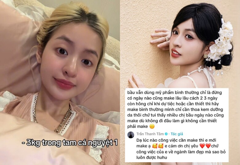 Những lần khác, khán giả cũng tràn vào góp ý khi thấy Trần Thanh Tâm đang mang bầu lại ăn đồ chứa nhiều dầu mỡ, thoải mái uống nước ngọt có ga, hay thường xuyên trang điểm đậm. Hot girl 10X cho biết, vì tính chất công việc có liên quan nhiều đến làm đẹp nên cô mới trang điểm: “Dạ lúc nào công việc cần make up thì em mới make up ạ. Em cảm ơn chị yêu. Chứ công việc của em về ngành làm đẹp mà sao bỏ luôn được huhu”. Nhiều khán giả khuyên cô nên chọn sử dụng sản phẩm có thành phần lành tính cho mẹ bầu, hạn chế trang điểm khi không cần thiết.