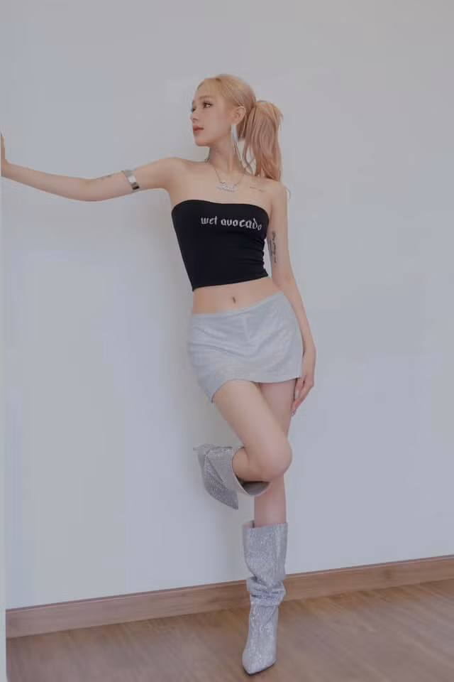 Ở bất cứ khung hình nào, cô đều chiếm trọn spotlight bởi vẻ đẹp hoàn hảo, khó có chỗ chê với mái tóc vàng nổi bật, càng khiến Xoài Non trông giống với búp bê barbie ngoài đời thực.