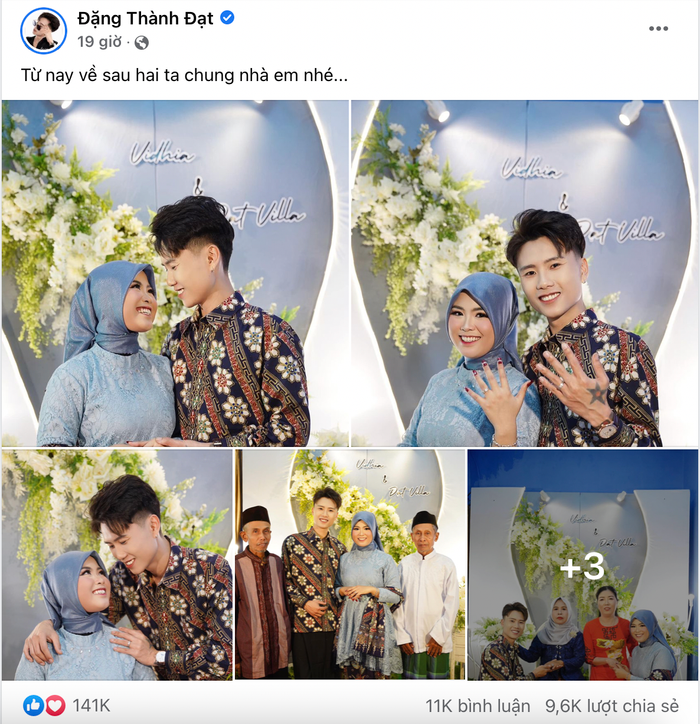 Mới đây chia sẻ trên trang cá nhân, Đạt Villa vui mừng cho biết anh và bạn gái Vidhia đã chính thức trở thành vợ chồng. Trước đó, nam TikToker cùng gia đình bay sang Indonesia để tổ chức lễ cưới. Ngoài ra, Đạt Villa còn hi sinh cắt bỏ phần da quanh "cậu nhỏ" để cưới được vợ theo nghi thức Hồi giáo.