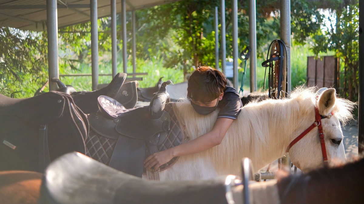 Cưỡi ngựa là môn thể thao đòi hỏi người chơi tương tác nhiều với con vật. Sự thân mật sẽ giúp học viên kiểm soát tình huống tốt hơn khi ngồi trên lưng ngựa. Do đó, làm quen với ngựa luôn là bài học đầu tiên của các tân binh. Một học viên mới của tôi đang dành thời gian vuốt ve, trò chuyện cùng chú ngựa sẽ đồng hành với cô trong buổi học.