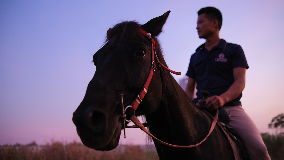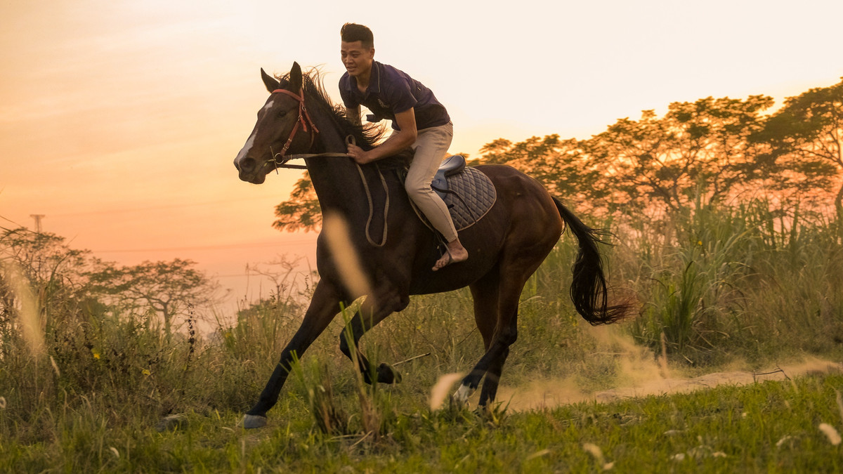 Sau giờ làm việc, tôi thường dành chút thời gian cuối ngày rong ruổi thư giãn với ngựa ở bãi đất gần CLB. Lúc này, tôi tháo giày và mũ để tận hưởng trọn vẹn cảm giác tự do, hòa mình với khung cảnh xung quanh.