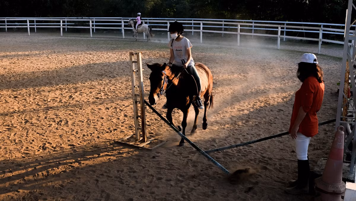 Một số đã chuyển sang các bài tập nâng cao như nhảy vượt rào, đứng hai chân, buông tay giữ thăng bằng trên lưng ngựa... Không chỉ phụ huynh, tôi có thể thấy rõ sự tự tin và trưởng thành hơn của các cô, cậu bé trong quá trình tập luyện.