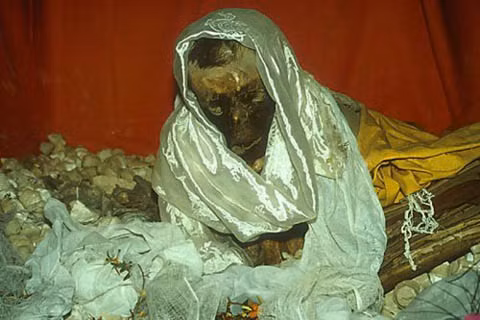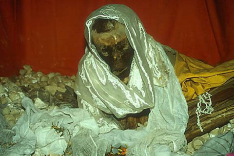 | Tóc vẫn còn trên xác khô 600 năm. |