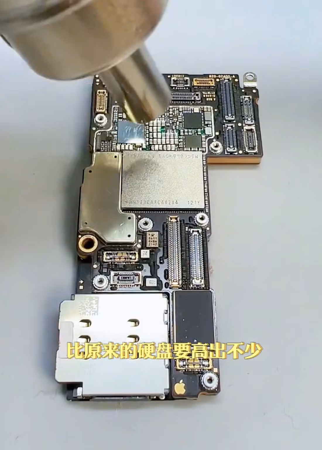 Chiếc iPhone 13 Pro Max được Changshun mua mới. Sau khi tháo bo mạch khỏi thân máy, kỹ sư này dùng mỏ hàn tách bộ tản nhiệt tích hợp (IHS), gắn quạt tản nhiệt để tăng khả năng làm mát rồi thêm loa ngoài cho âm lượng lớn hơn.