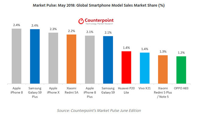| iPhone 8 đang là smartphone bán chạy nhất trong tháng 5. |