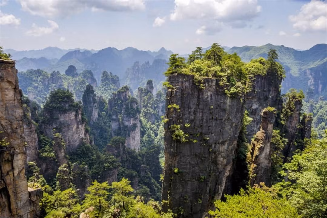 Công viên rừng quốc gia Trương Gia Giới: "Kho báu" đáng kinh ngạc này nằm ở phía bắc tỉnh Hồ Nam. Công viên thu hút khách du lịch với những đỉnh núi và những cột đá khổng lồ và những thung lũng sâu. Hàng nghìn thành tạo sa thạch tự nhiên chiếm ưu thế trong cảnh quan của công viên này, một số trong số chúng đạt đến độ cao 200 m. Nơi đây là nguồn cảm hứng cho những ngọn núi nổi trong bộ phim “Avatar”.