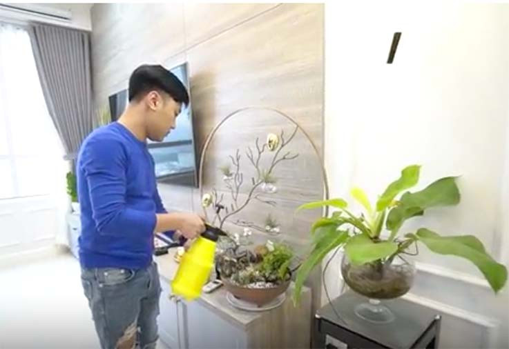 | Căn hộ của Don Nguyễn được nam ca sĩ chọn phông màu chủ đạo là trắng pha với xám, bởi anh mệnh thuỷ nên hợp màu trắng. Ngoài những nội thất hiện đại thì nam ca sĩ cũng chịu khó chăm sóc cây xanh. Trong căn hộ của anh cũng rất nhiều cây xanh được anh bố trí hợp lý tạo không gian xanh, mát mẻ. |
