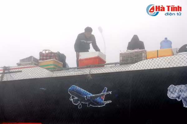 | Khi thùng xe đã chật ních, số hàng hóa còn lại phải chất lên nóc xe, ràng buộc và che đậy cẩn thận. |