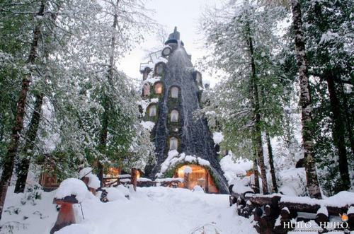 Khách sạn bên trong thác nước này là một khách sạn có thiết kế vô cùng độc đáo với 13 phòng, nằm trong Huilo Huilo - kỳ quan thiên nhiên nổi tiếng ở Chile.